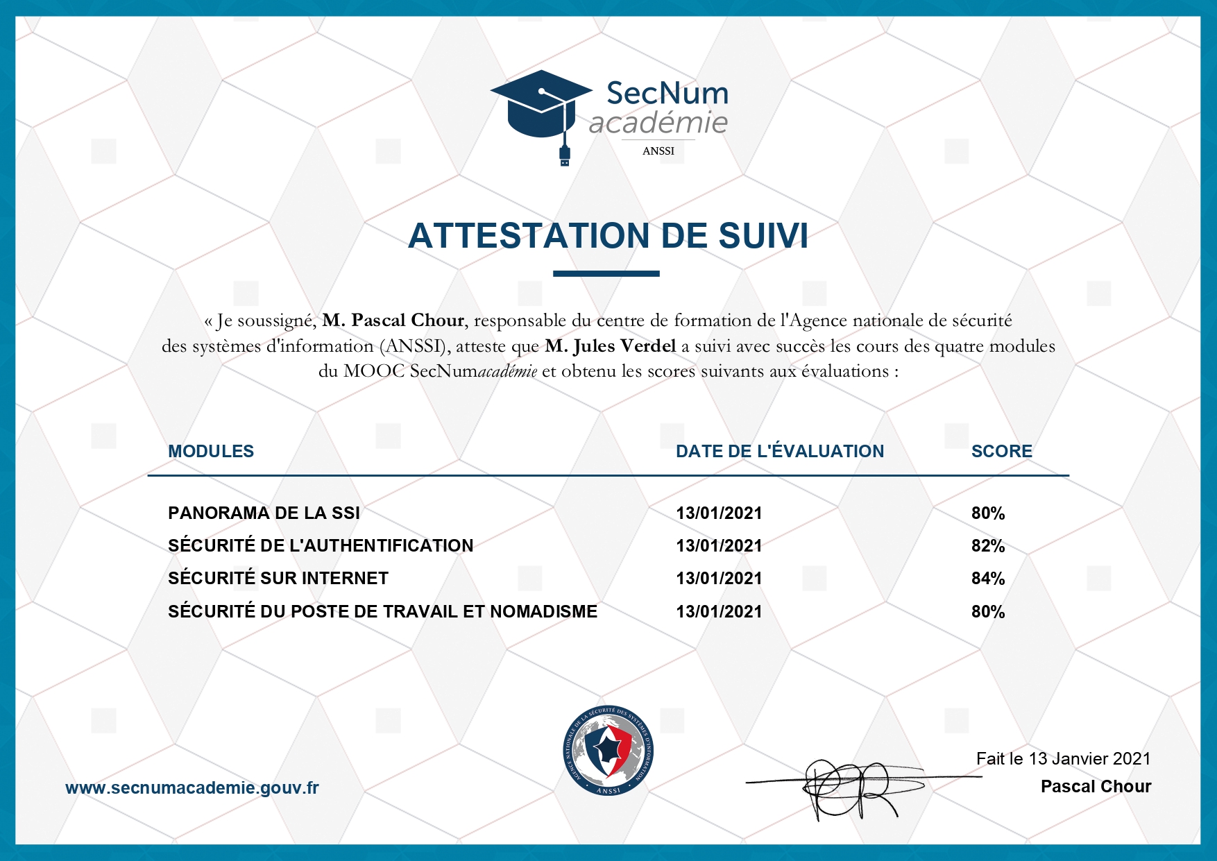 Au travers de mon parcours, j'ai pu réaliser des certifications